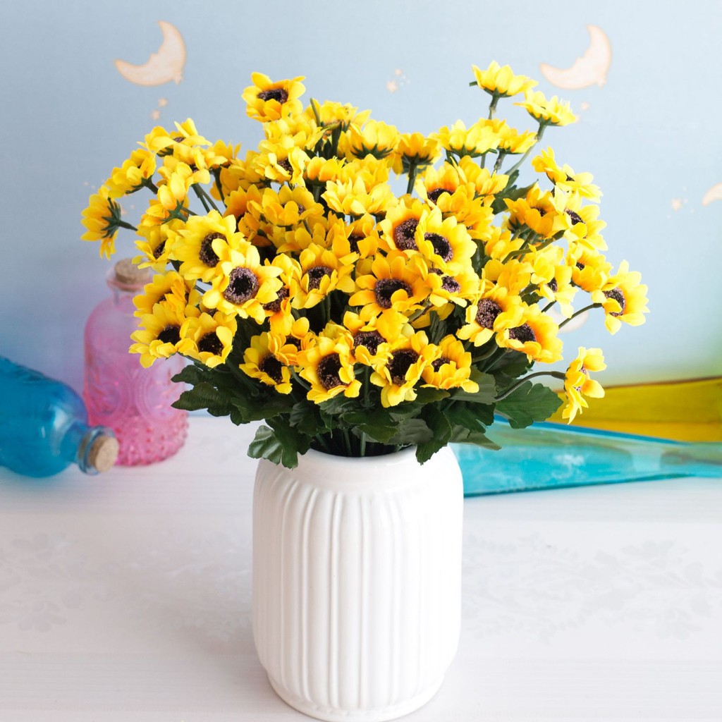 Terlaris Bunga Matahari Plastik Imitasi Artificial Bunga Artifisial Kecil Dekorasi Rumah Furniture Interior Rumah Tangga Bukalapak Com Inkuiri Com from s2.inkuiri.net Bunga yang menyerupai mawar kecil menjuntai dari batangnya ini mempunyai dedaunan yang terlihat seperti banyak jarum, namun teksturnya tidak tajam. Bagian yang paling indah dari tanaman ini adalah bunganya. Sebenarnya bunga ini merupakan bunga majemuk yang tersusun dari ratusan bahkan ribuan bunga kecil pada satu bongkolan. Bunga matahari memiliki akar panjang yang perlu direntangkan, sehingga tanaman ini lebih menyukai tanah yang digali dengan baik, longgar, dan mengalir dengan baik. Sifat inilah yang mengawali filosofi bunga matahari tersebut, dihubungkan dengan kesetiaan. Hal yang membuat tanaman ini sempurna untuk meja rumahmu adalah fakta bahwa mereka merupakan salah satu tanaman terbaik yang bisa tumbuh tanpa sinar matahari. Biji bunga matahari berwarna hitam keabuan dan termasuk sebagai bunga majemuk karena memiliki kelopak besar yang membentuk pita kuning terang, serta tersusun atas ribuan kelopak bunga kecil dalam satu bonggol bunga. Bunga matahari memiliki perilaku yang khas yaitu selalu mengikuti arah sinar matahari.